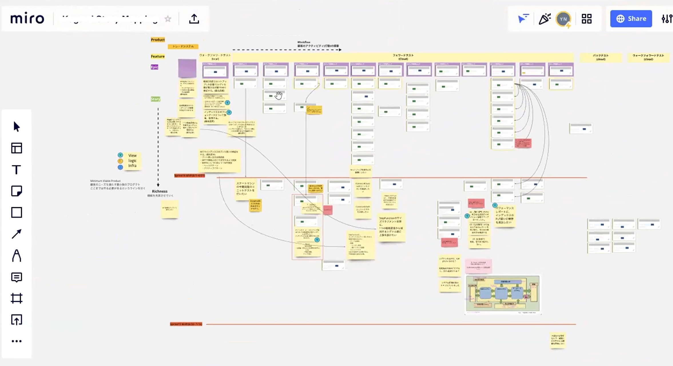 Miroで作成したマインドマップは、チーム全体にスムーズに共有できるので、これによってユーザーストーリーの見積もりをする際の認識の齟齬(そご)が減り、見積もりの精度が高くなったと思います。