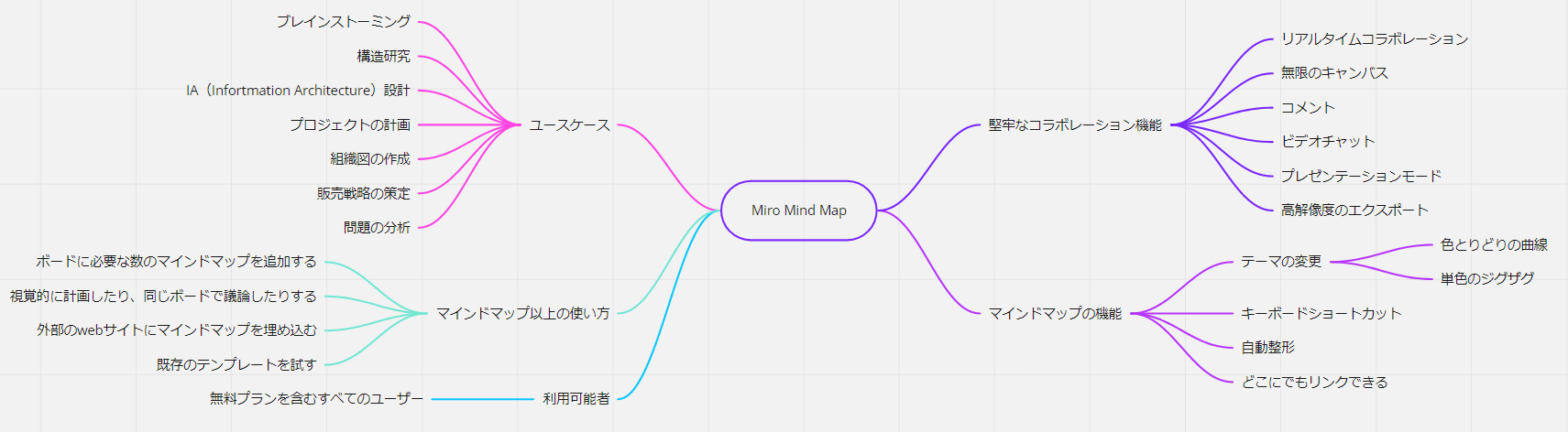 Mind Map(マインドマップ)は、アイディアを発散させていく・深く掘り下げることに適した機能・テンプレートです。