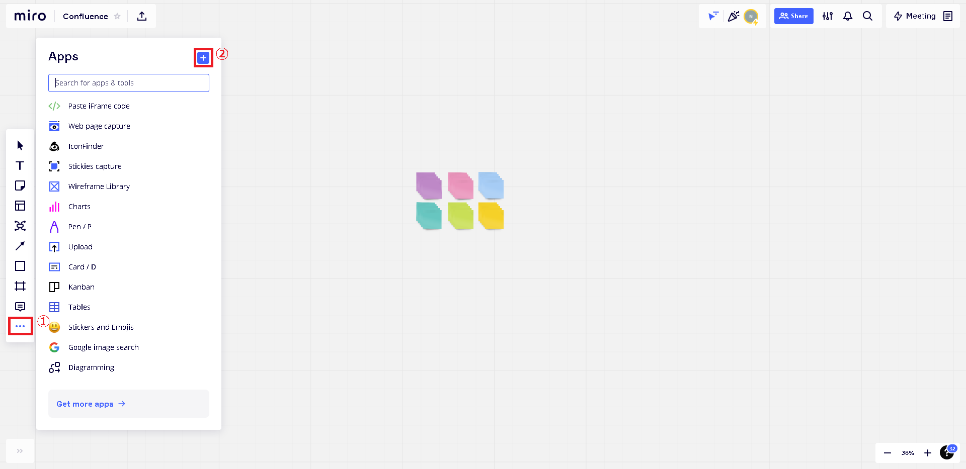 ①Miroのホワイトボード画面に表示されている、左メニューの「…」を選択します。