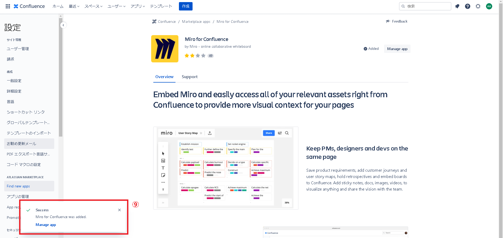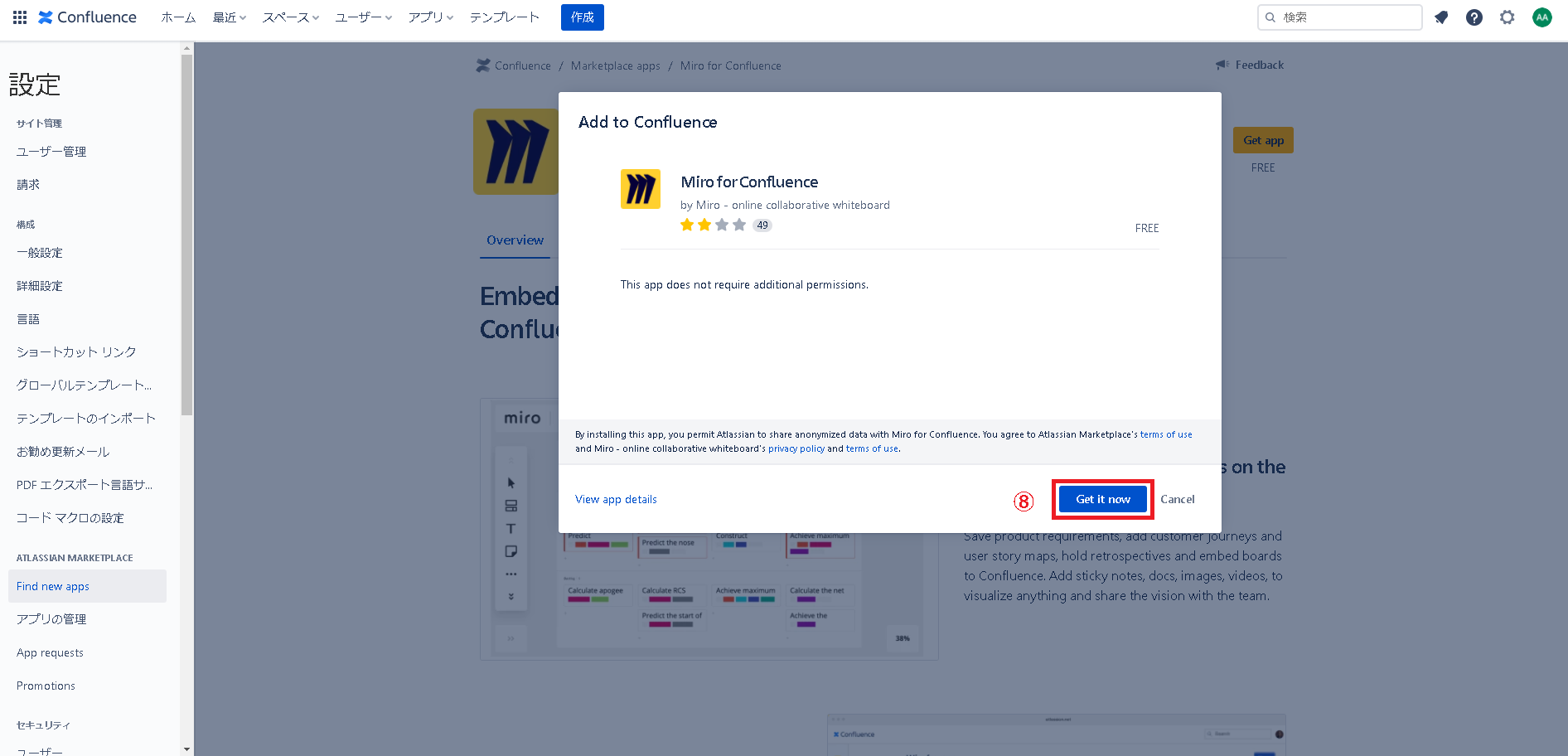 ここからは、ConfluenceとMiroを連携させる手順と、Confluence上にMiroを表示する方法を紹介します。